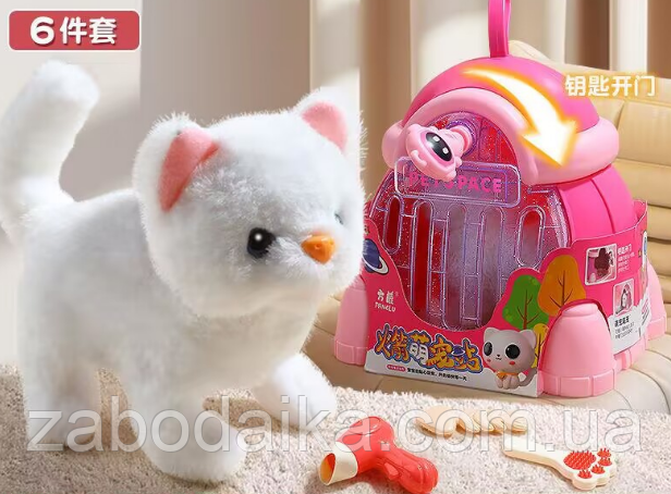 Кішка м'яка іграшка перенесення будиночка ходить, м'якує, виляє хвостиком, інтерактивна LK 001 C